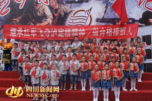 四川新聞網(wǎng)甘孜5月30日訊(瀘宣)為紀(jì)念紅軍飛奪瀘定橋勝利77周年,進一步促進學(xué)校創(chuàng)先爭優(yōu)及校風(fēng)建設(shè)活動的深入開展,5月29日上午,瀘定縣成武小學(xué)全體師生懷著對紅軍精神的無限崇敬以及對革命先烈的緬懷之情隆重舉行了以“弘揚紅軍長征精神、爭做四好少年”為主題的紀(jì)念紅軍飛奪瀘定橋勝利77周年文藝匯演。瀘定縣人大主任胡林、副主任周伯云、縣委宣傳部領(lǐng)導(dǎo),共青團瀘定縣委書記劉小會參加了本次慶;顒。