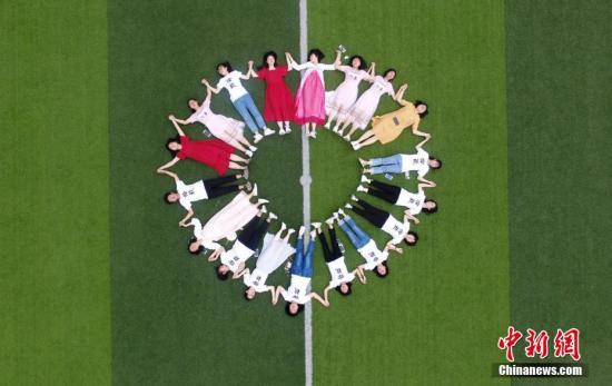 高三學(xué)生創(chuàng)意畢業(yè)照輕松迎高考:學(xué)生們圍成一個圈。何紅福 攝
