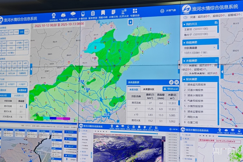 電子大屏上的淮河流域數(shù)字孿生水利體系(央廣網(wǎng)記者 趙家慧攝)