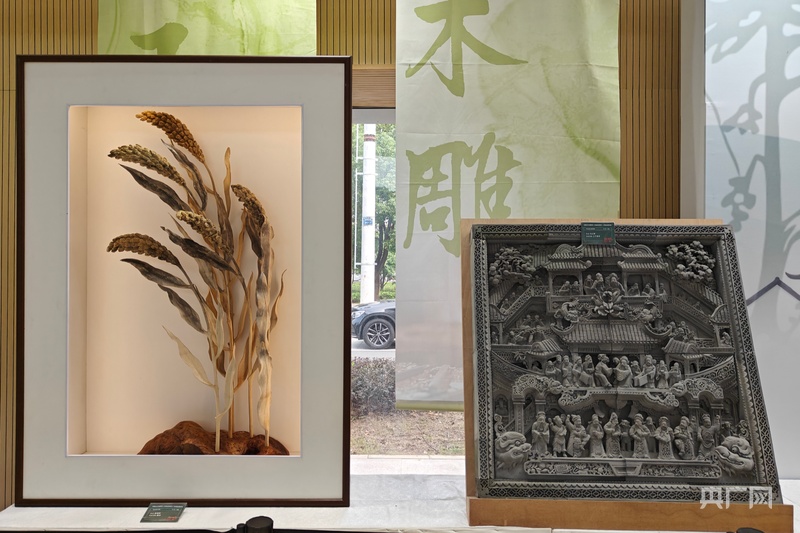 “我的作品是徽州磚雕《西廂記》。為了參加這次展覽,我花費一個半月精心雕琢。來到現(xiàn)場,看到同行大師們的作品,我感到非常震撼,也學到了很多!卑不帐∴l(xiāng)村工匠名師吳仕杰在談及參展感受時說道。