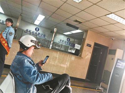 一位電動(dòng)自行車(chē)車(chē)主在等待辦理手續(xù)攝影/屈暢