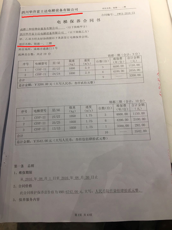 錦都小區(qū)一期、三期的電梯合同(部分)