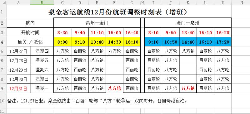 投入運(yùn)營后,泉金航線每周四和周日泉金航線將執(zhí)行10個航班,其余每天執(zhí)行8個航班。據(jù)了解,“百麗”輪滿載客位量180人,新客運(yùn)的投入運(yùn)營,將極大緩解目前泉金航線的運(yùn)營壓力,