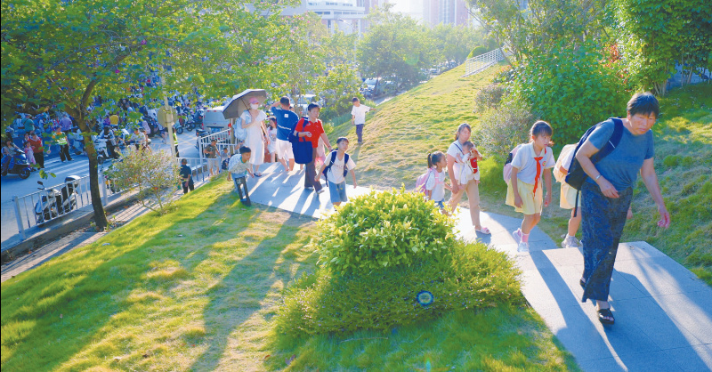 “接孩子再也不用在路邊干等了,公園里能散步、有地方坐,還能和其他家長聊聊天。”傍晚時分,公園里聚集了不少等候孩子的家長。退休的王阿姨笑著說:“有了親子活動區(qū)、健康步道,接送孩子、加強(qiáng)鍛煉兩不誤,這才是老少皆宜的好設(shè)計!