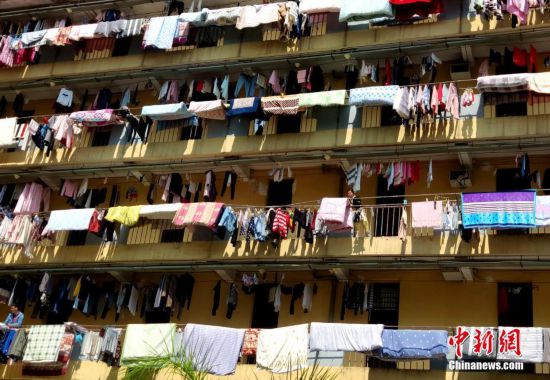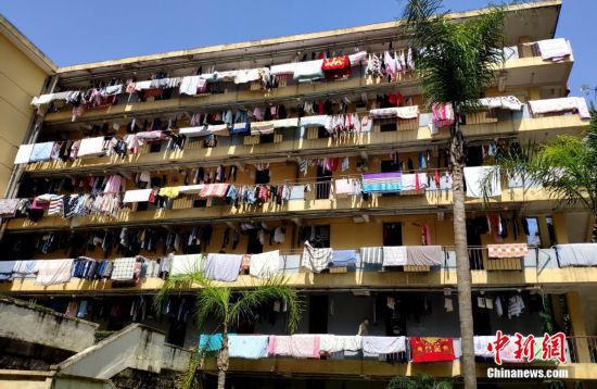 3月12日,福州市暫別陰雨天氣,迎來晴天。福州某高校的一棟宿舍樓外,學生晾曬的被子和衣物“鋪天蓋地”,成為一道別樣的風景。中新社記者呂明攝