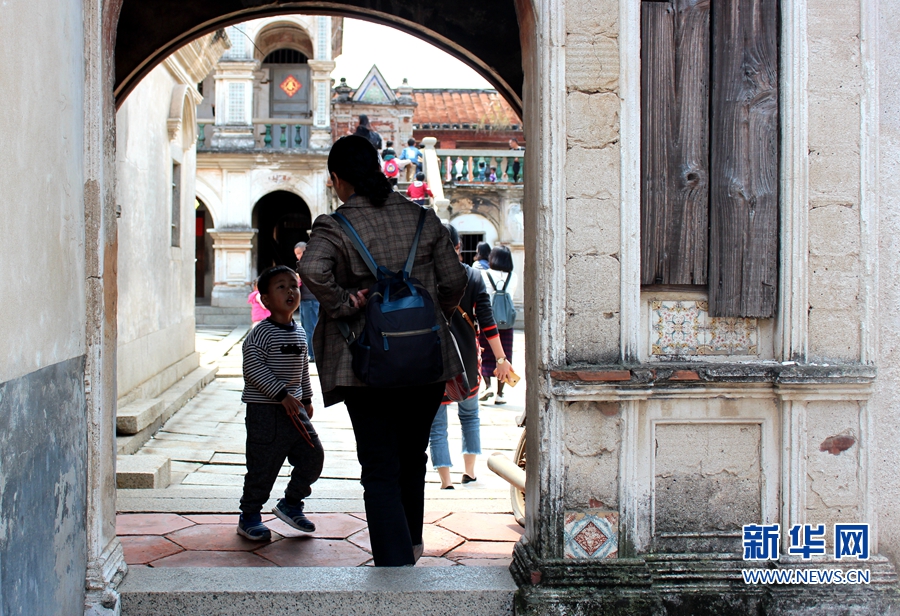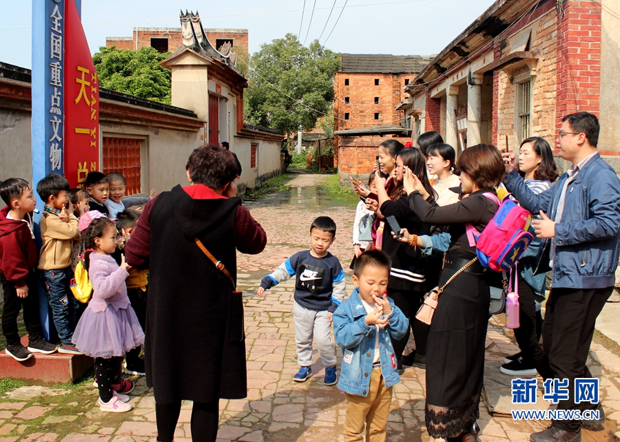 3月16日正值周末,許多家長帶著孩子到鄉(xiāng)間踏青,在老建筑里尋覓鄉(xiāng)愁。新華網(wǎng) 劉默涵 攝