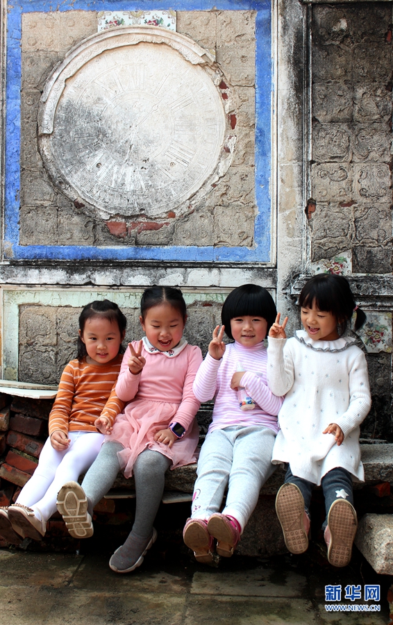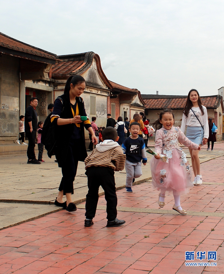 陰雨多日的福建閩南地區(qū)迎來了久違的太陽,3月16日,孩子們在林氏義莊前嬉戲。新華網(wǎng) 劉默涵 攝