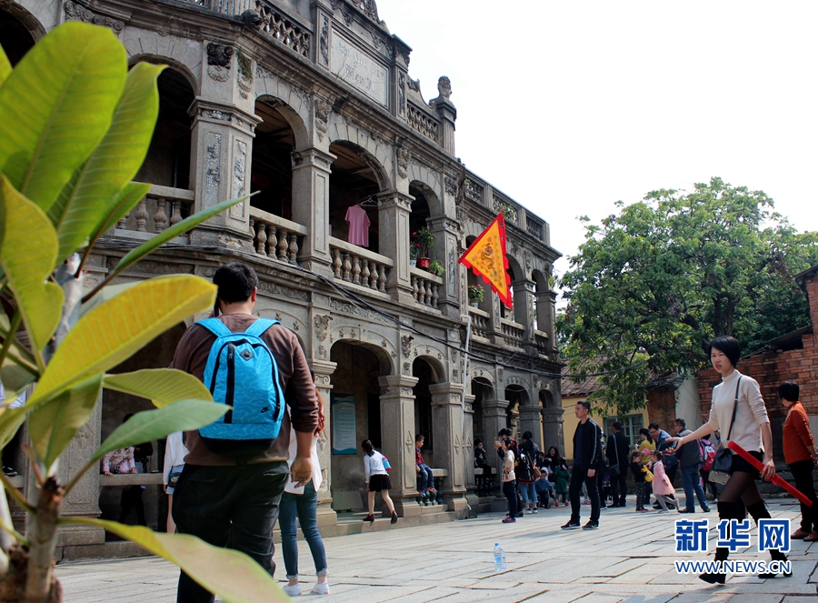 3月16日,游客在漳州臺商投資區(qū)角美鎮(zhèn)曾氏洋樓前參觀。曾氏洋樓始建于1903年,是當(dāng)?shù)刂麅S宅。新華網(wǎng) 劉默涵 攝