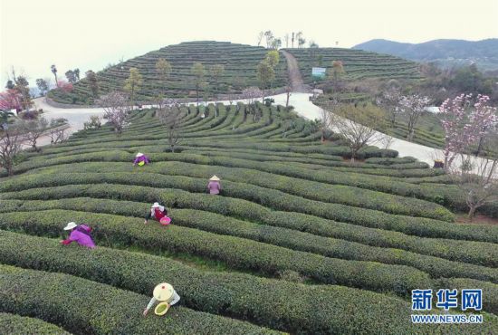 3月21日,茶農(nóng)在福鼎市佳陽畬族鄉(xiāng)后陽村的鼎白茶園采摘茶青(無人機拍攝)。 福建省福鼎市白茶種植歷史悠久。近年來福鼎市把茶產(chǎn)業(yè)作為精準脫貧和鄉(xiāng)村振興的戰(zhàn)略性產(chǎn)業(yè)來發(fā)展,通過多項舉措推動茶產(chǎn)業(yè)轉型升級,2018年全市茶園面積達20.3萬畝,茶葉總產(chǎn)量2.7萬噸,涉茶總產(chǎn)值達56.88億元,有效帶動當?shù)剜l(xiāng)村產(chǎn)業(yè)振興和農(nóng)民增收致富。 新華社記者林善傳攝