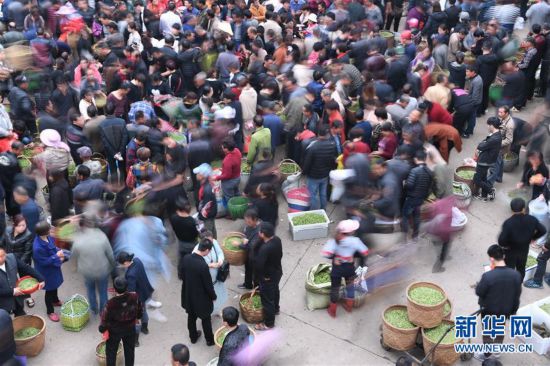 3月21日,茶農(nóng)在福鼎市點頭鎮(zhèn)的福鼎白茶交易市場售賣茶青。 福建省福鼎市白茶種植歷史悠久。近年來福鼎市把茶產(chǎn)業(yè)作為精準脫貧和鄉(xiāng)村振興的戰(zhàn)略性產(chǎn)業(yè)來發(fā)展,通過多項舉措推動茶產(chǎn)業(yè)轉型升級,2018年全市茶園面積達20.3萬畝,茶葉總產(chǎn)量2.7萬噸,涉茶總產(chǎn)值達56.88億元,有效帶動當?shù)剜l(xiāng)村產(chǎn)業(yè)振興和農(nóng)民增收致富。 新華社記者林善傳攝