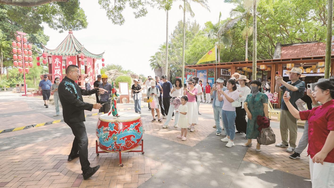 10月14日,在東山關(guān)帝文化產(chǎn)業(yè)園,省級非遺鐵枝木偶戲傳承人陳銀龍正在表演。