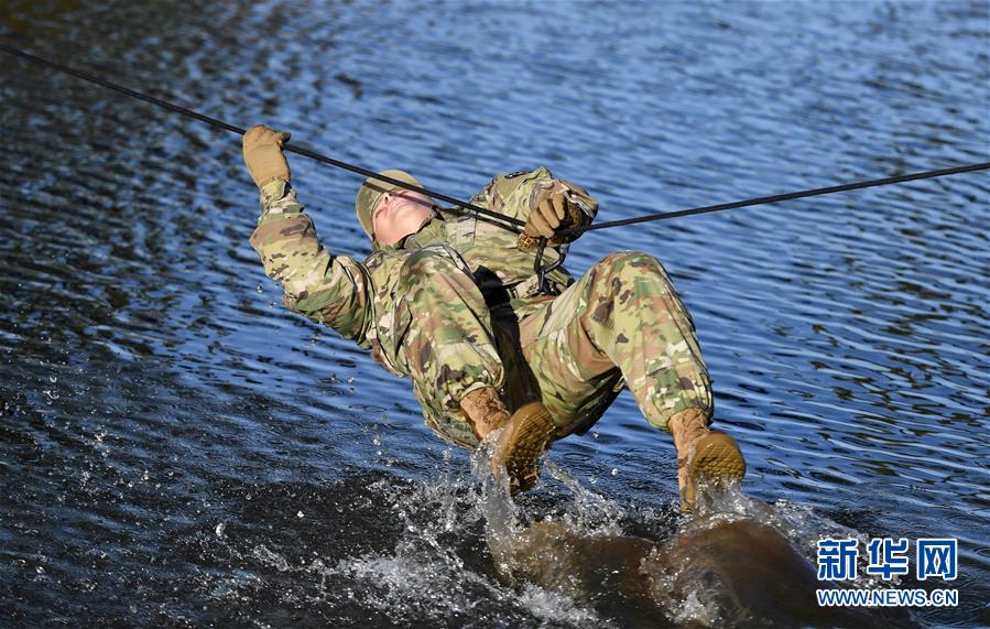 11月18日,在美國俄勒岡州錫賽德的國民警衛(wèi)隊(duì)拉里葉軍營,一名美軍士兵參加單繩橋救援演練。中美兩軍人道主義救援減災(zāi)聯(lián)合實(shí)兵演練當(dāng)日進(jìn)入第三天。此次聯(lián)合演練中美兩軍共派出200余人參加。新華社記者殷博古攝 -