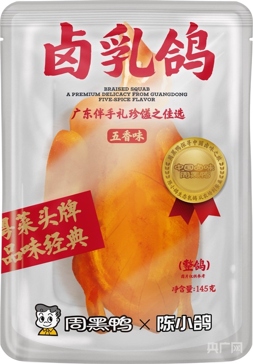 “自今年3月份以來(lái),經(jīng)過(guò)近百次的產(chǎn)品研發(fā)調(diào)試,新品鹵乳鴿終于正式亮相!崩蠲例g介紹道,“鹵乳鴿嚴(yán)選陳小鴿自家養(yǎng)殖的優(yōu)質(zhì)乳鴿,搭配周黑鴨匠心傳承的獨(dú)門(mén)鹵制技藝,歷經(jīng)38道匠心工藝,鹵香入骨,嫩滑多汁。新品推出了五香和甜辣兩種口味,預(yù)計(jì)于11月11日與消費(fèi)者見(jiàn)面!