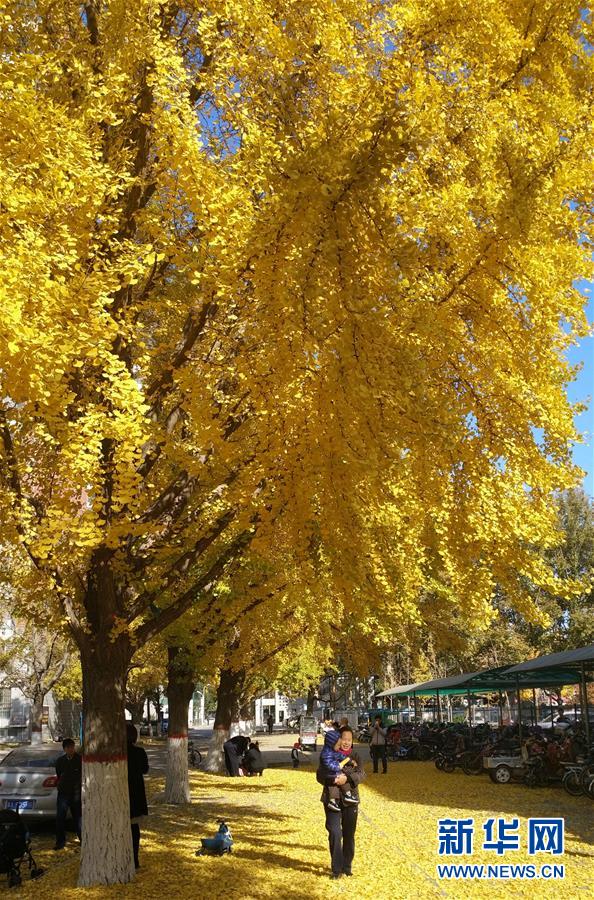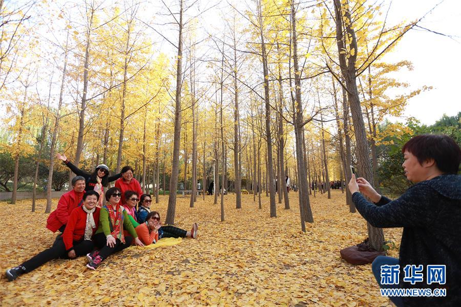 •   11月7日,市民在位于石家莊的河北經(jīng)貿(mào)大學(xué)銀杏林拍照留念。新華社發(fā)(詹新城 攝)