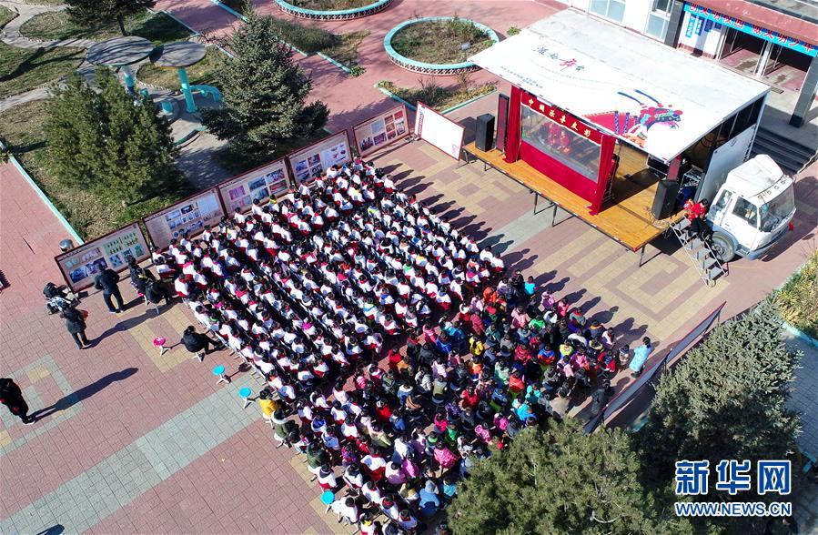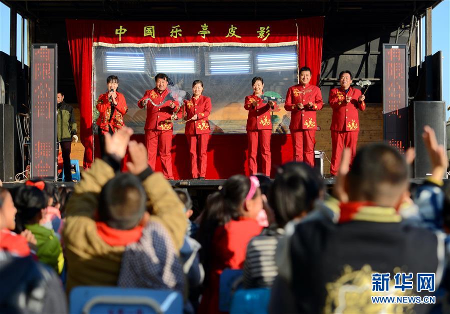 11月21日,河北省樂亭縣汀流河中心小學(xué)學(xué)生在文化大篷車前觀看樂亭皮影劇目表演。新華社記者 牟宇 攝 今年以來,河北省樂亭縣文化、教育部門啟動“文化大篷車校園傳非遺”活動,通過在城鄉(xiāng)中小學(xué)舉行非遺展演、非遺項目傳承人現(xiàn)場授課等方式,讓學(xué)生們接受傳統(tǒng)文化教育。 -