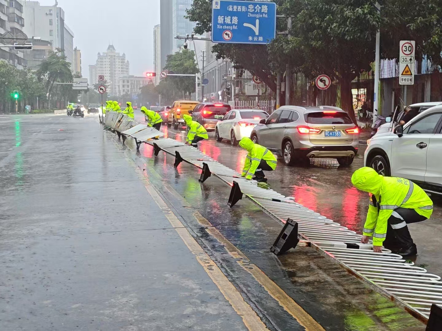 10月5日,今年第21號臺風(fēng)“麥德姆”給?趲磔^大風(fēng)雨,?诰窖杆僬{(diào)整安保勤務(wù)模式,全力以赴筑牢城市安全防線。