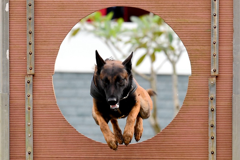 •      上午9點(diǎn),警犬技術(shù)匯報(bào)演練正式開始,進(jìn)行匯報(bào)演練的是從全省174名警犬技術(shù)人員和238頭警犬中選撥出來的優(yōu)秀代表,共有單犬服從、穿越障礙、箱包搜毒、飛車撲咬、車輛搜爆、追蹤、房屋搜捕、制服暴恐分子(雙犬撲咬)、群體性事件處置等九個(gè)項(xiàng)目,現(xiàn)場(chǎng)氣氛濃厚,競(jìng)爭(zhēng)激烈。此次警犬技術(shù)實(shí)戰(zhàn)對(duì)抗比武為期三天,來自全省公安機(jī)關(guān)的59名帶犬民警和45頭警犬將參加追蹤、搜捕、搜毒、搜爆等4個(gè)科目的比武,將決出團(tuán)體前三名和4個(gè)單項(xiàng)科目的前三名,參加比武的都是勤學(xué)苦練、甘于奉獻(xiàn)的基層警犬技術(shù)人員,他們積極使用警犬技術(shù)維護(hù)一方平安,為建設(shè)平安海南默默貢獻(xiàn)力量。