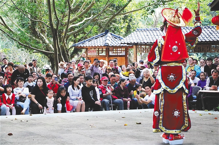 2月5日,市民游客在?诨鹕娇诘刭|(zhì)公園觀看瓊劇表演。海南日報(bào)記者 張茂 通訊員 熊麗 攝