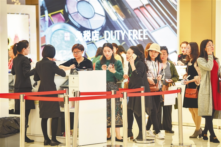 今年1月19日,位于海口日月廣場的免稅店正式營業(yè),加上離島免稅購物限額升至3萬元,點(diǎn)燃了游客們“買買買”的熱情,也推動(dòng)了假期旅游市場品質(zhì)消費(fèi)的提升。