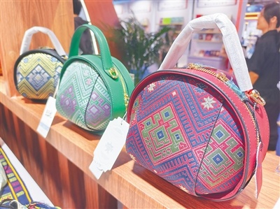 “哇,好漂亮的包,我可以試背一下嗎?”當天,在版博會海南館的展臺前,許女士盯著一款黎錦文創(chuàng)包袋,駐足許久。得到許可后,她迫不及待接過包挎在肩上,手指輕輕摩挲著包身細密的黎錦紋路,眼里滿是驚喜。