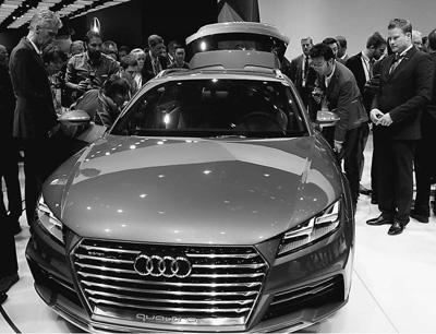 13日舉行的北美國際車展上,觀眾仔細觀看奧迪發(fā)布的Allroad Shooting Brake概念車。