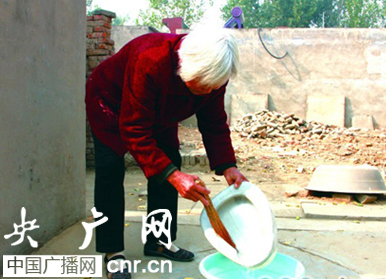由于家里沒有能掙錢的人,唯一的收入就是種地。她留下生活必需的糧食,把余糧賣掉換錢給婆婆看病。即使這樣,也遠遠解脫不了生活中的困境。為此,趙枝妮開始到村附近的工廠打零工。年逾六旬的趙枝妮每天一路小跑,奔波在家、田地、路上和工廠里。地里的農(nóng)活、一日三餐、料理家務(wù)、照顧婆婆……生活的艱辛壓得趙枝妮喘不過氣來,但她從沒有說過一聲苦和累。因常年高負荷勞累,腰椎盤突出、高血壓、肩周炎等“毛病”都找上了趙枝妮,她曾多次昏倒在田地里、爐灶前。但17年過去了,97歲的婆婆在趙枝妮的照顧下,依舊頭腦清醒,眼不花,耳不聾。趙枝妮的親娘也已經(jīng)90多歲,身體不好,她只能帶著深深的愧疚,趁中午在村里打工的兒媳回家吃飯時,替她照看婆婆一會,自己急匆匆的趕回娘家去探望老母親。母親體諒枝妮的困難,每次都攆她:“我沒事,你快回吧,你婆婆跟前離不了人。”