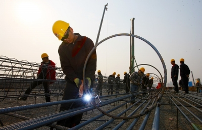 “站在這里的位置是T2航站樓,北邊是飛行區(qū)和第二跑道,南邊是綜合交通換乘中心!眲⑸钲(圖中焊接者)放下手中的電焊活,站在土堆上向四周比劃著,整個(gè)鄭州機(jī)場(chǎng)二期工程的輪廓已經(jīng)清晰可見(jiàn)。