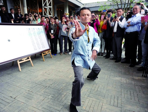 今年5月,太極禪苑在杭州西溪揭牌,馬云現(xiàn)場(chǎng)表演太極拳