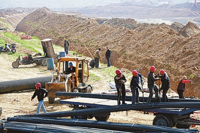 2010年3月,記者在同一地點的拍攝汝河水系改造工程施工場景。