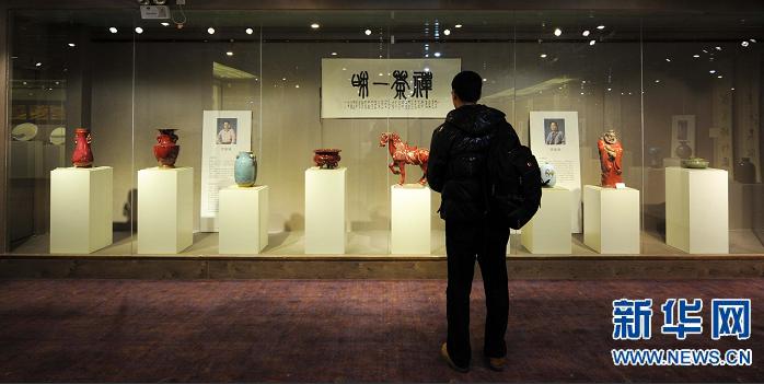 1月9日,參觀者在欣賞陶瓷作品。