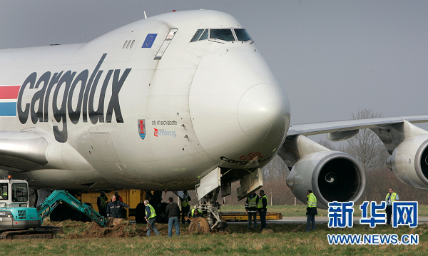 圖為2009年3月17日,一架盧森堡貨運(yùn)航空公司的波音747飛機(jī)停在荷蘭馬斯特里赫特的亞琛機(jī)場。