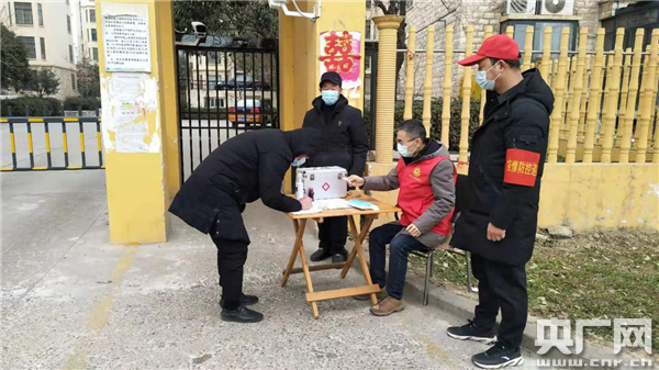 寶豐縣美林灣小區(qū)物業(yè)疫情防控值守人員對進(jìn)入小區(qū)人員做登記(央廣網(wǎng)發(fā) 通訊員 魯潤佳 供圖)
