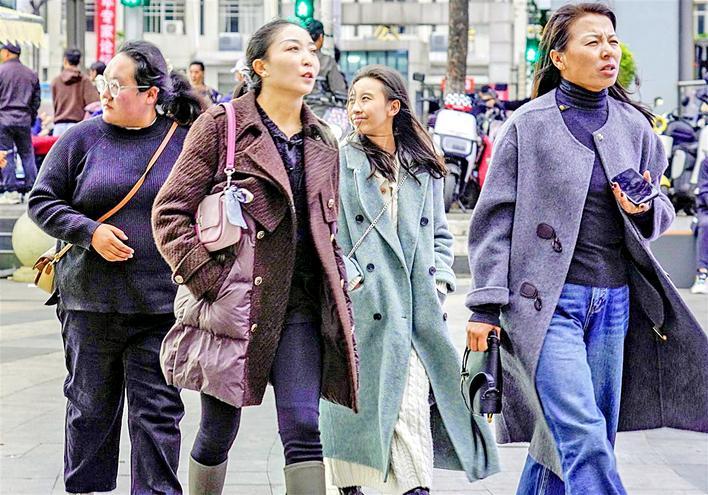 江城街頭不少人穿上了大衣 攝影:楚天都市報(bào)極目新聞?dòng)浾呃钶x