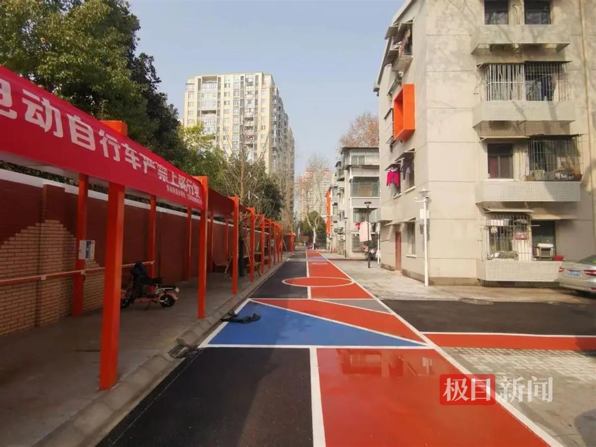 紅磚墻、象棋石桌、修車(chē)攤、橙色邊框、彩色步道……舊改后,65歲“高齡”的惠濟(jì)路42號(hào)小區(qū),保留了小區(qū)原有的歷史和文化,同時(shí)大量靚麗色彩呈現(xiàn)在墻體及路面上,讓現(xiàn)代與傳統(tǒng),時(shí)尚與懷舊在這里并存。