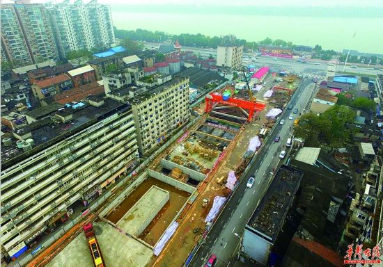 12月13日,長沙市勞動路與書院路交叉口西側(cè),地鐵3號線靈官渡站車站主體已基本成型,本月下旬將正式完工,之后將有4臺盾構(gòu)機從靈官渡站始發(fā)。目前,3號線一期工程已全面進入盾構(gòu)施工階段,全線共有9臺盾構(gòu)機參與掘進作業(yè),預計春節(jié)前下穿湘江。 記者 李健 攝