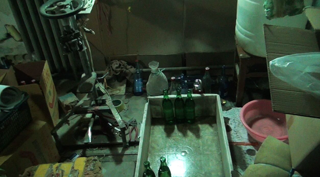 2018年1月,環(huán)食藥旅總隊接到舉報,在北京市朝陽十八里店鄉(xiāng)某村,盤踞一生產(chǎn)銷售假酒團伙,經(jīng)過偵查人員縝密偵查,發(fā)現(xiàn)該假酒團伙以親戚、老鄉(xiāng)為紐帶,把租住的村民自建房作為生產(chǎn)、加工、存儲假酒窩點,將假酒灌裝至收購來的酒瓶中,并包裝成品牌白酒,銷售至周邊市場,形成了生產(chǎn)、加工、銷售“一條龍”的全鏈條,嚴(yán)重擾亂北京市酒類市場生產(chǎn)經(jīng)營秩序,危害到人民群眾的健康。