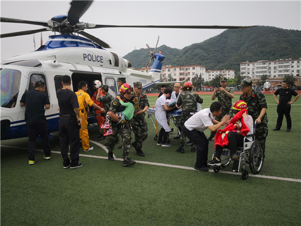 大雨之后的石城鎮(zhèn)進(jìn)山道路損毀嚴(yán)重。22日接到災(zāi)情和救援通知后,北京市公安局啟動應(yīng)急飛行救援機(jī)制,調(diào)派警務(wù)航空總隊(duì)2架警用直升機(jī),緊急運(yùn)送消防官兵和醫(yī)療救護(hù)人員到達(dá)黃?诖迳缴駨R地區(qū),分批次優(yōu)先運(yùn)送行動不便和患病的老人兒童至溪翁莊鎮(zhèn)密云水庫中學(xué)臨時(shí)安置點(diǎn),并組織其他被困群眾向山下轉(zhuǎn)移。