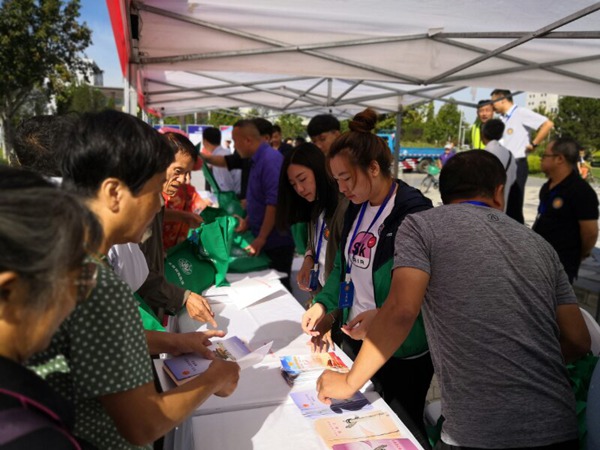 9月17日上午,在北京房山區(qū)府前廣場(chǎng),區(qū)民政局工作人員向居民發(fā)放民政普法宣傳手冊(cè)。(北京市民政綜合執(zhí)法監(jiān)察大隊(duì)供圖)
