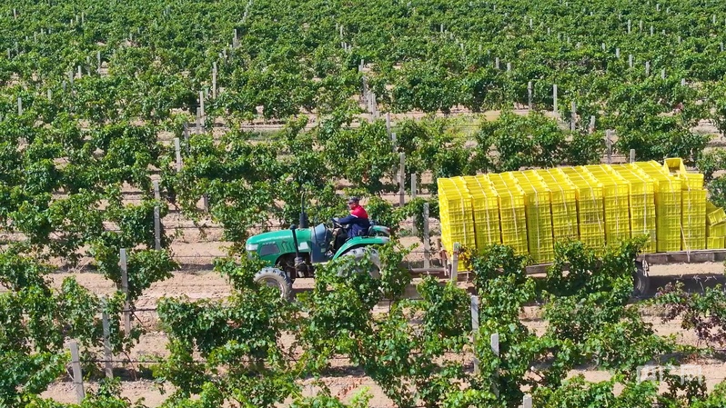 紅寺堡區(qū)村民采收葡萄(央廣網(wǎng)記者 齊平 攝)