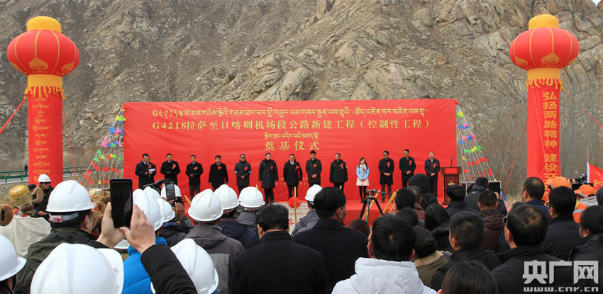 G4218拉薩至日喀則機(jī)場(chǎng)段公路新建工程(控制性工程)開工(央廣網(wǎng)記者 普布次仁 攝)