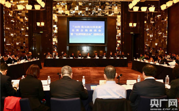 央廣網(wǎng)成都1月13日消息(記者賈宜超)適逢改革開放40年、《告臺(tái)灣同胞書》發(fā)表40周年之際,1月11日,四川省臺(tái)辦在成都市舉行“40年我與四川同發(fā)展”臺(tái)商臺(tái)胞座談會(huì)暨“臺(tái)資明星企業(yè)”授牌儀式,臺(tái)胞臺(tái)商以親身感受講述了“我與四川同發(fā)展”的故事,分享了他們眼中的四川發(fā)展成就。會(huì)上,40家在川發(fā)展的臺(tái)資企業(yè)被授牌“臺(tái)資明星企業(yè)”。