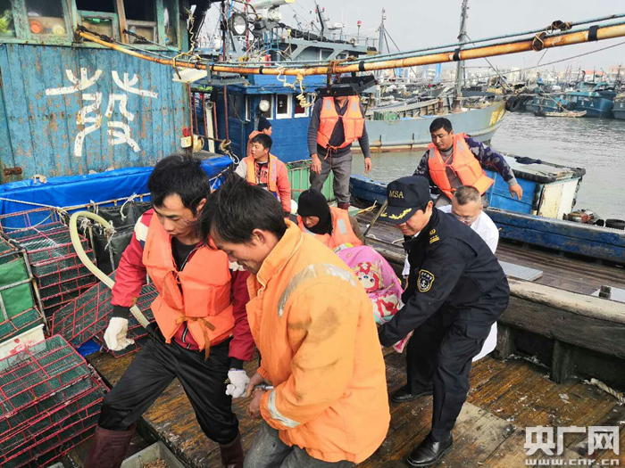 獲救船員被送往當(dāng)?shù)蒯t(yī)院進(jìn)行檢查救治(央廣網(wǎng)發(fā) 通訊員供圖)