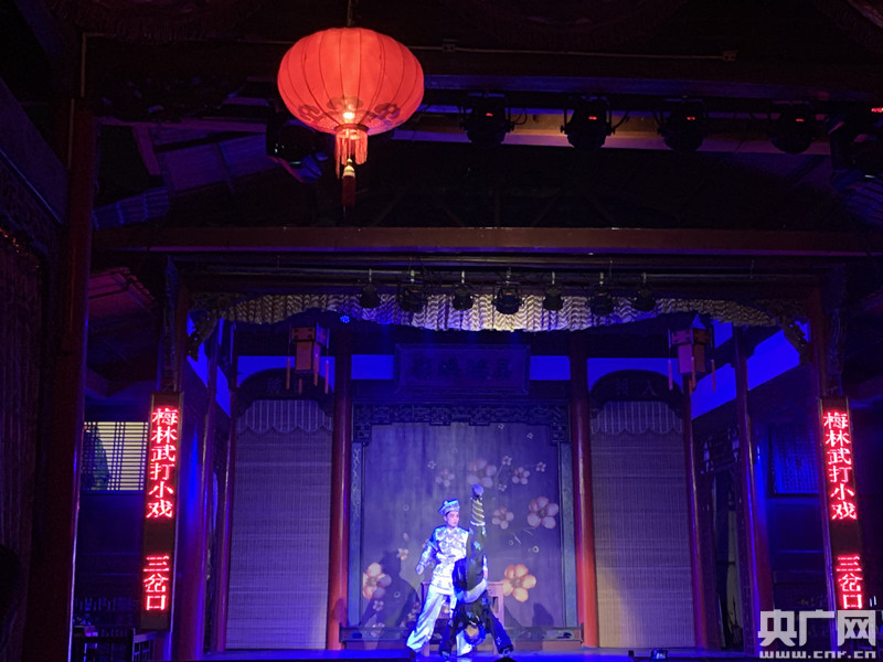 央廣網(wǎng)三明2月17日消息(記者 萬存靈)悠揚的笛聲配上清脆的琵琶聲,干練的武打招式配上如癡如醉的唱腔,正月初十晚上,在福建省三明市泰寧縣尚書第古宅里,泰寧縣梅林戲藝術(shù)傳承保護中心的演員們正在給觀眾奉上一場精彩的梅林戲表演。