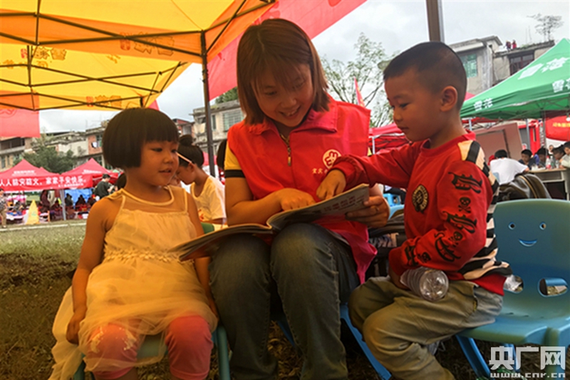 志愿者陪伴孩子學(xué)習(xí)(央廣網(wǎng)記者 賈宜超攝)