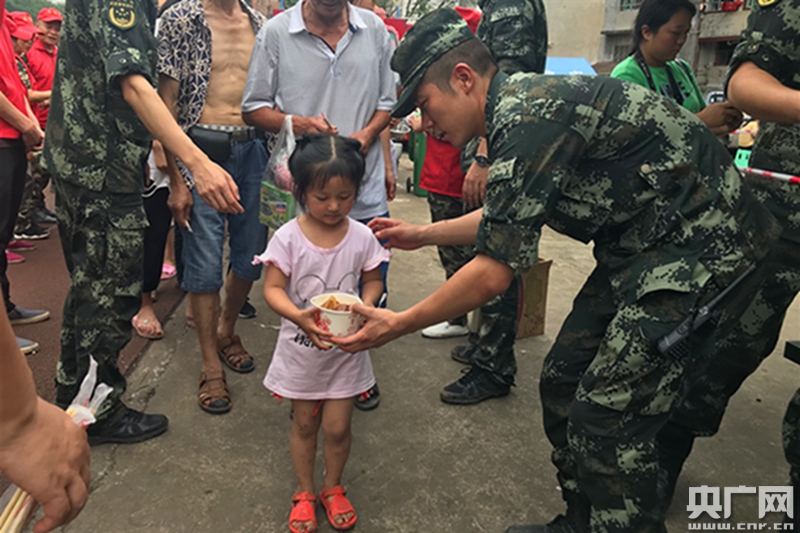 武警官兵為受災(zāi)群眾準(zhǔn)備了熱飯(央廣網(wǎng)記者 賈宜超攝)