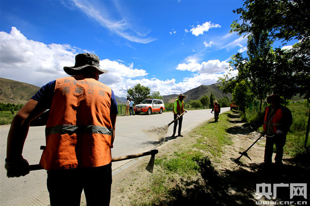 該縣養(yǎng)護工人正在對農(nóng)村公路進行養(yǎng)護(央廣網(wǎng)發(fā) 通訊員供圖)