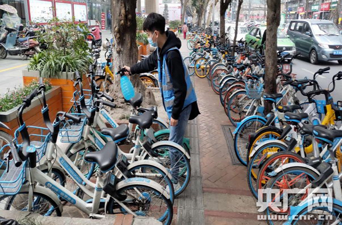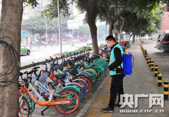 成都各共享單車運維公司也已將此前的巡游消毒升級成“無差別消毒”,不分品牌、不分顏色,對負(fù)責(zé)區(qū)域內(nèi)所有共享單車進(jìn)行消毒,確保群眾安全騎行。