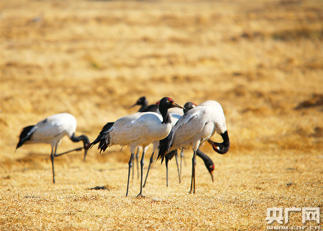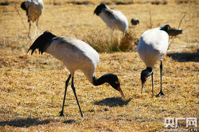 云南昭通大山包越冬黑頸鶴北遷完畢(央廣網(wǎng)發(fā) 鄭遠見 攝)