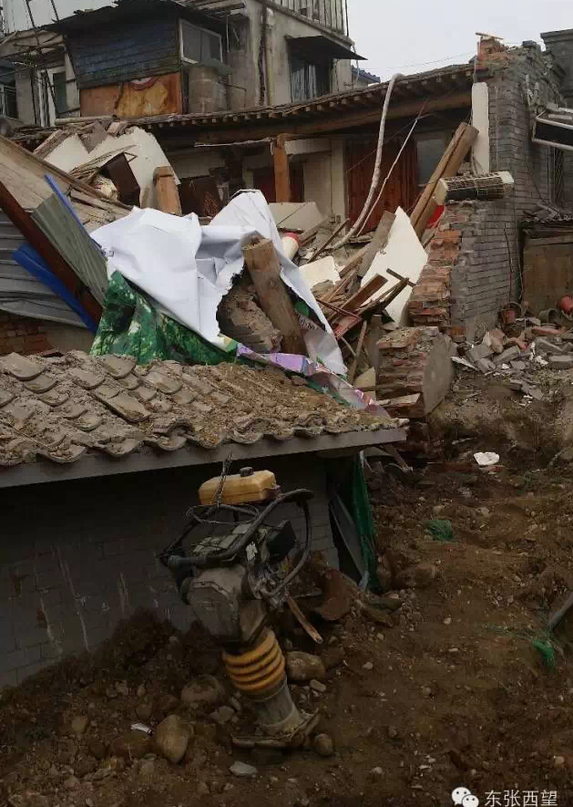 現(xiàn)在,這處民宅已經(jīng)變成了一片廢墟。一個(gè)長約15米、寬5米左右、深約10米的大坑,把這座宅子整個(gè)兒包了進(jìn)去。