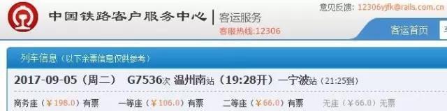 溫州南至寧波最低只要66元 二等座相當于打6.8折
